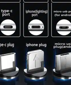 Innehåller 3 magnetiska pluggar för alla enheter - iPhone, Micro USB, USB-C-Type. Pluggarna fungerar också som fukt- och dammskydd för laddningsuttaget.